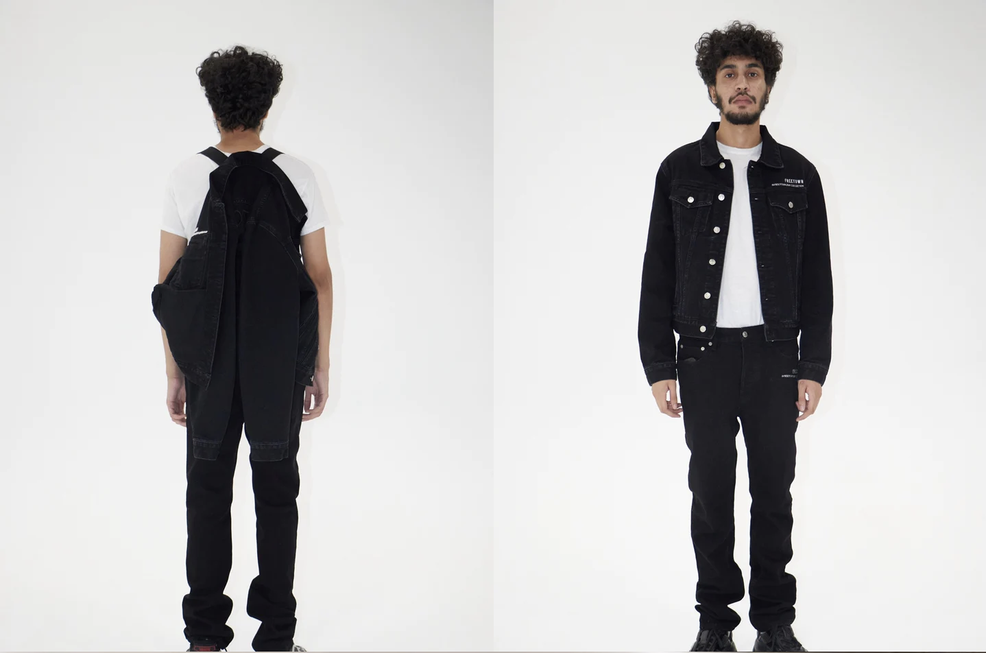 Fast forward, [now I] design clothes under the moniker Freetown. I started designing clothes because I was missing certain things out of my own wardrobe and I wanted something to shoot as a fashion photographer. I got real in-depth with creating custom pieces, [like this] denim luggage jacket. I designed everything down to the branding on the buttons - look at the detailing. There's this harness inside the jacket, so if you ever get hot you can rock it like a backpack or crossbody bag and you'll still be looking fly, you feel me? This jacket is hard.