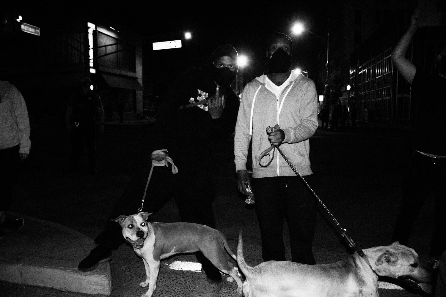 Here’s another image from the series [with] these two men (below). They had two pit bulls, and they were almost like protest protection. If I remember correctly, they were just patrolling the area, walking around making sure no one was on that type of time where they’re damaging the mom and pop stores in Asbury. Because you did see those people that were not even from the area, come to protests and they would purposely start shit by causing violence, antagonizing people, antagonizing the police for no reason. These two men weren't having that.