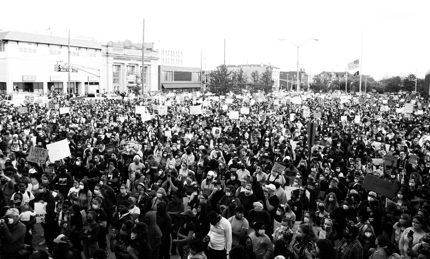 This image is a helicopter in the sky (right), I assume monitoring the protest from a birds eye view. From afar this image reminds me of a crosshair. This is one of those right places at the right time type of shots. I’m proud to have caught this technically wise based on my positioning, camera lens, and settings.